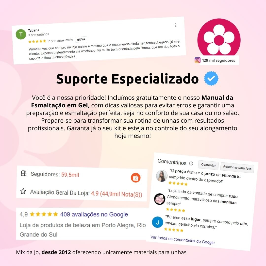 Este é apenas um dos diversos kits para alongamento de unhas que você encontra em nosso site. Confira as demais opções disponíveis caso você queira explorar mais opções. Se ainda assim você ficar com dúvidas sobre qual kit de alongamento escolher, entre em contato conosco via whatsapp. A nossa equipe especilizada está disponível para te atender e tirar todas as duas.